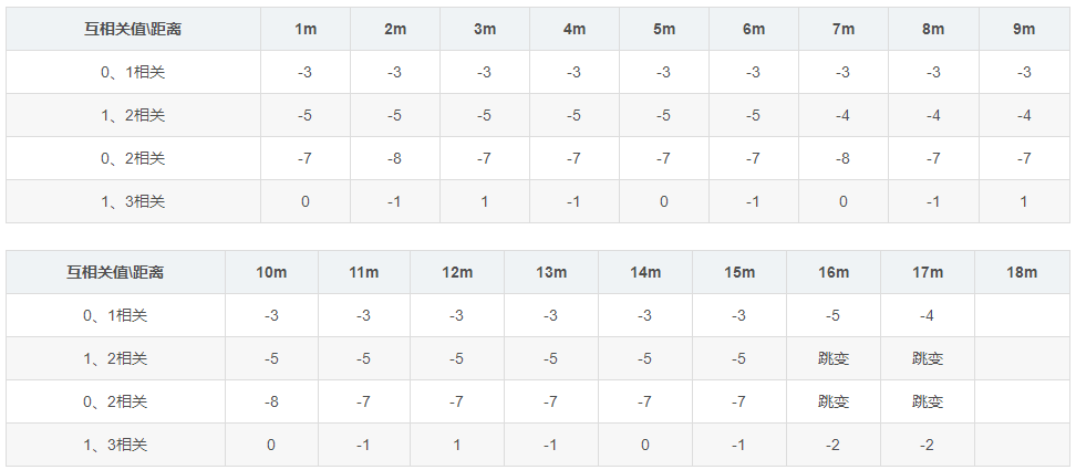表中的距离为声源到离声源最近一个硅麦的距离。