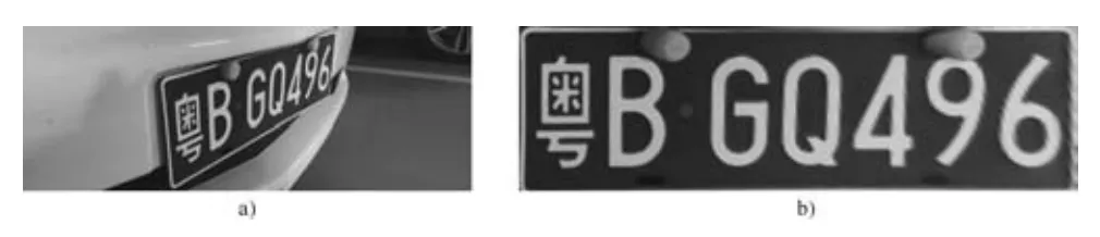 图4.(a)字符粘连的图像;(b)用5×9结构元对二值化后的图(a)进行开运算的结果