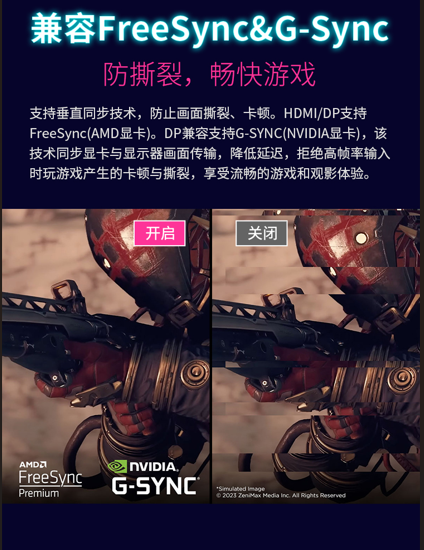 XG273-4K-OLED-2显示器兼容FreeSync & G-Sync垂直同步技术,带来更顺滑、更沉浸的游戏体验。无论你使用的是 AMD 还是 NVIDIA 显卡,显示器都能通过 HDMI 或 DP 接口实现同步刷新,避免画面撕裂与卡顿现象的发生。特别是在高帧率输入的竞技游戏中,这项技术能有效减少主机与显示器之间的延迟,确保每一帧画面都精准呈现,让玩家在关键时刻反应更快、操作更稳。