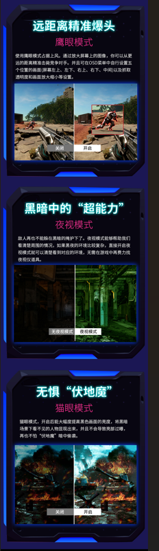 除此之外,XG273-4K-OLED-2显示器还配备了“鹰眼模式”、“夜视模式”与“猫眼模式”等多种游戏优化功能,针对不同场景调校画面表现。鹰眼模式强化远距离目标清晰度,助力精准瞄准;夜视模式提升暗部细节,揭示隐藏敌人;猫眼模式优化高速动态画面,减少拖影模糊。配合防撕裂技术,这些模式共同构建出一个无干扰、无延迟的沉浸式战场环境,无论是FPS、MOBA还是开放世界冒险游戏,玩家都能在这块屏幕上获得足够的视觉掌控力与竞技优势。