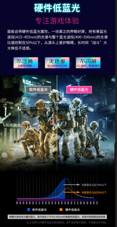 长时间面对屏幕的玩家和创作者往往容易眼部不适,而XG273-4K-OLED-2的硬件低蓝光技术从源头解决了这一问题。通过优化光谱分布,将有害蓝光波段(415-455nm)占比控制在50%以下,既保护了眼睛,又避免了软件滤光导致的色彩失真。