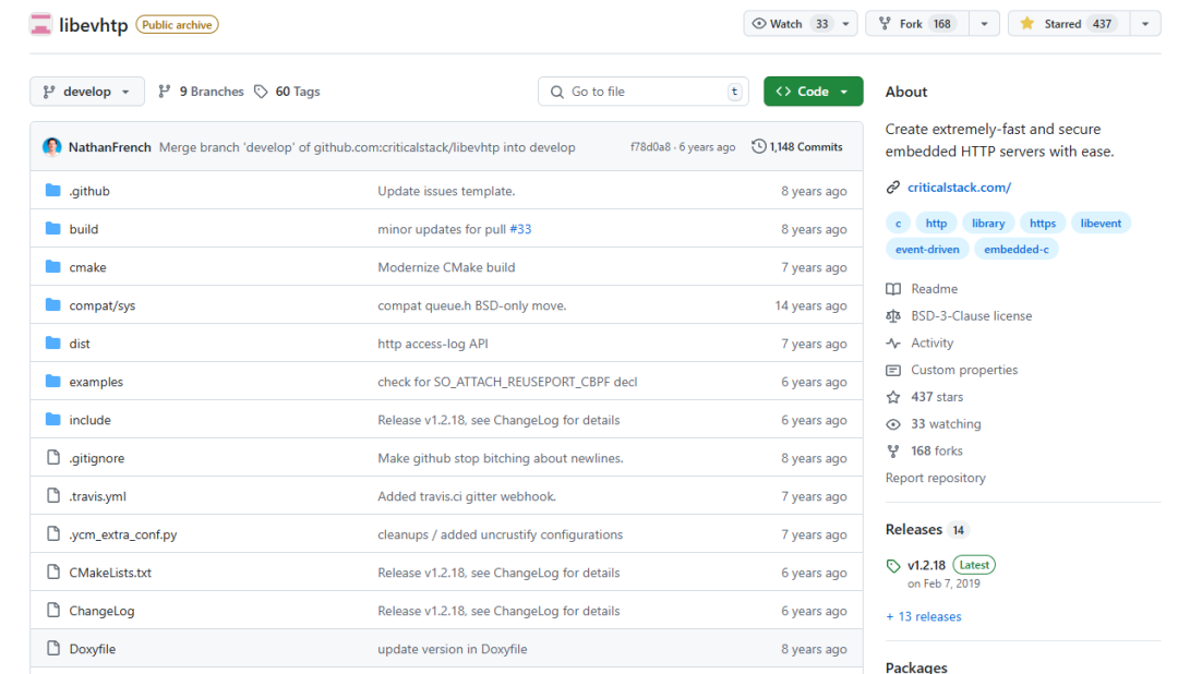 项目地址:https://github.com/Yellow-Camper/libevhtp