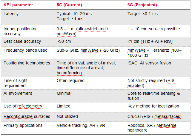 当前,5G技术对内容仍基本保持“不可知”状态,且边缘侧缺乏深度AI集成。因此,其无法根据人类用户上下文动态调整体验质量,导致复杂沉浸式场景下的性能表现欠佳。在全息通信等沉浸式通信场景中,除高带宽和数据负载能力外,0.1毫秒的超低时延及定位精度至关重要(见表1)。当前5G advanced的最佳定位精度为0.3米,而6G则为1厘米。实现毫米级精度对空间敏感的机器人化和全息应用(如远程手术)至关重要。