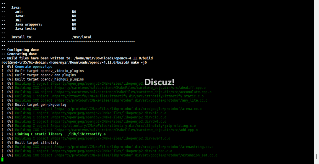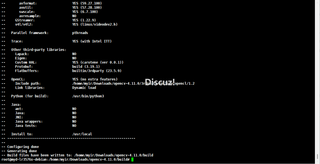 cmake -D CMAKE_BUILD_TYPE=RELEASE-D CMAKE_INSTALL_PREFIX=/usr/local-D INSTALL_C_EXAMPLES=ON-D INSTALL_PYTHON_EXAMPLES=OFF-D OPENCV_GENERATE_PKGCONFIG=ON-D OPENCV_EXTRA_MODULES_PATH=/home/myir/Downloads/opencv-4.11.0/opencv_contrib-4.11.0/modules-D BUILD_EXAMPLES=ON-D BUILD_opencv_python3=OFF-D BUILD_opencv_python2=OFF-D BUILD_NEW_PYTHON_SUPPORT=OFF-D WITH_GTK=ON-D WITH_FFMPEG=ON ..