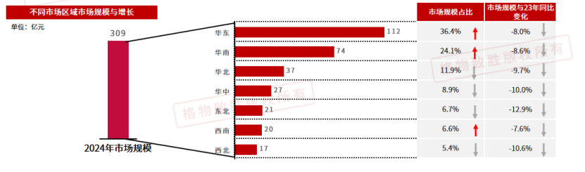 - 西南地区由年来国家政策力度倾斜,且能源价格相较东部地区更低,再加上四川、重庆和云南等地配套设施较为完善,因此近年来其工业市场规模总体上处于上升趋势。2024年其工业传感器市场规模占比达到6.6%,市场规模下降幅度小于市场整体下降幅度。