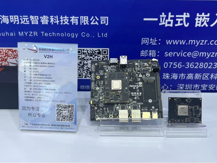 嵌入式方案商明远睿智展示了基于瑞萨产品的高性能AI核心板,该芯片AI算力达TOPS且能效出色,支持边缘端处理复杂视觉任务,可用于工业自动化、服务机器人、智能监控与安防、医疗等领域。