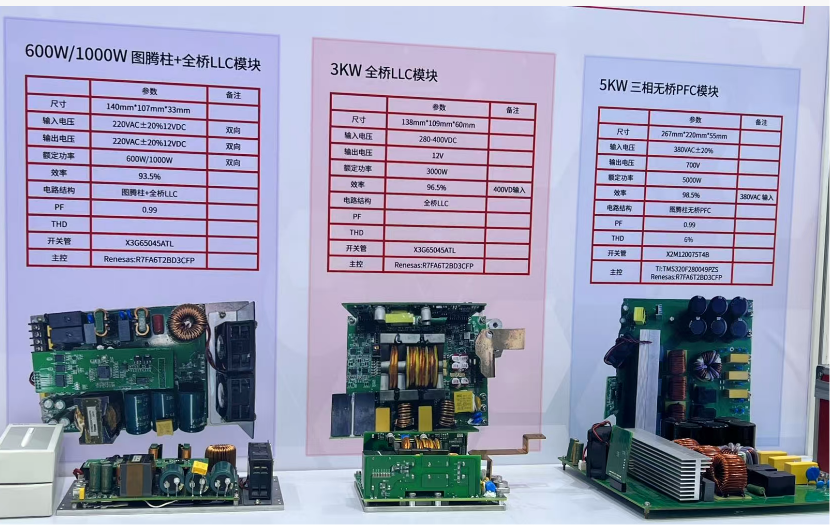 宽禁带功率器件原厂芯干线展示了基于瑞萨MCU的多款数字电源解决方案,包括高效率PFC和逆变器模块。