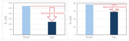 图1:TO-247与TOLL封装的导通损耗(Eon)和关断损耗(Eoff)比较