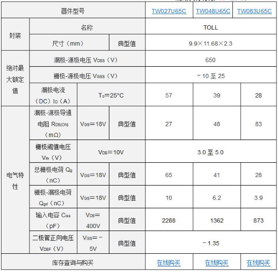 东芝电子元件及存储装置株式会社(“东芝”)宣布,推出三款650V碳化硅(SiC)MOSFET——“TW027U65C”、“TW048U65C”和“TW083U65C”。这三款产品配备其最新[1]第3代SiC MOSFET芯片,并采用表面贴装TOLL封装,适用于开关电源、光伏发电机功率调节器等工业设备。三款器件于今日开始支持批量出货。