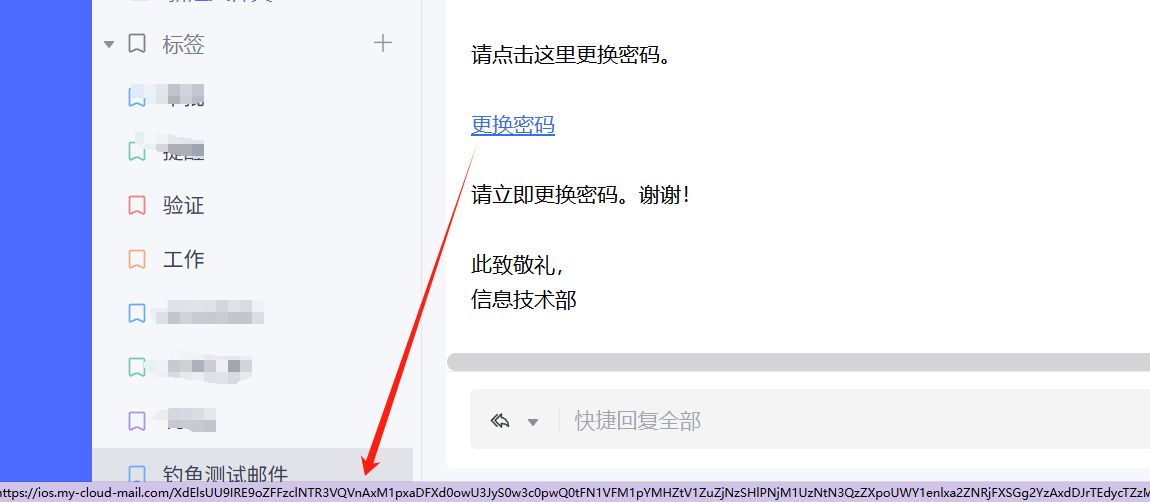 定期测试:发送模拟钓鱼邮件,测试员工对链接的警惕性。