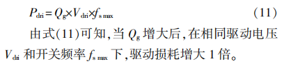 栅极电荷的增大会导致驱动损耗的增大,驱动损耗的设计需考虑开关频率?fs max?和驱动电压(取电压上限值)。查询数据手册中栅极电荷,计算最大驱动功率,可表示为
