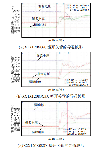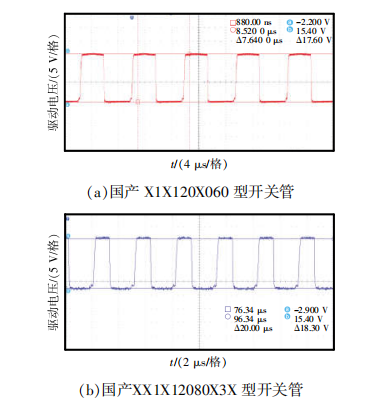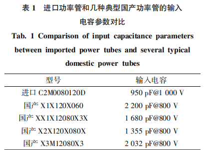 电容?Ciss?有关袁Ciss?越大、导通所需时间往往越长[14],由表?1?进口功率管和?4?种典型国产功率管的输入电容参数对比可以看出,4?种典型国产?SiC MOSFET?器件的输入电容?Ciss?均大于进口?SiC MOSFET?器件,由此可见国产?SiC MOSFET?器件导通所需时间较长。