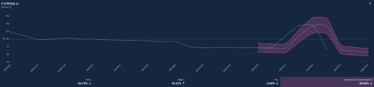 - 正如四方维商品动态商情市场动态预测热力图所示,随着交货周期指数下降,2025年第三季度的交货延迟趋势预计将对采购商更有利。