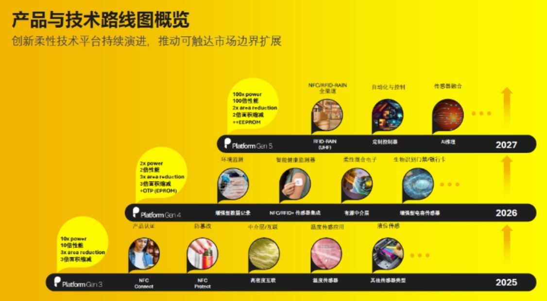 从未来的产品路线图可以看到,FlexIC柔性半导体工艺到第五代产品将扩展到UHF RFID 与柔性 MCU,面向“连接+感知+轻量计算”的更丰富应用。相信柔性MCU的出现将为行业带来更大的想象空间,同时凭借柔性芯片+柔性PCB的“柔性生态”的建立,将重塑电子产品的新形态。