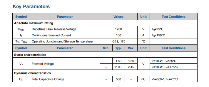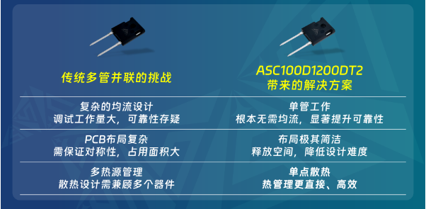 ASC100D1200DT2的核心价值在于其自身的高电流密度特性,它为系统设计工程师提供了更优的基础选项: