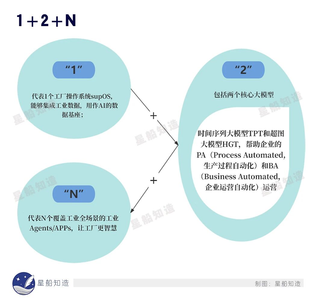 如上文所说,这些工业AI爆品只是工具,在工厂操作系统supOS的加持之下,最终融合成“1+2+N”工业AI驱动的企业智能运行新架构——也就是一个“生态平台”。