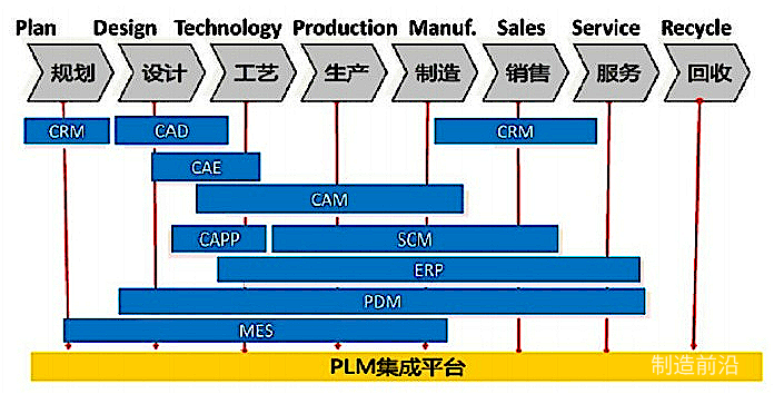 设计环节发展历程:图纸制图→二维工程制图→三维设计建模-基于CAD/CAE/CAM的软件系统协同→基于产品数据的多专业协同设计→基于产品全生命周期(PLM)的协同平台