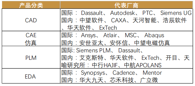 研发设计类软件应用于电子计算机及其外围设备,协助工程技术人员完成产品设计和制造,提升产品开发效率、降低开发成本、缩短开发周期、提高产品质量。主要分为以下四类软件:计算机辅助设计类软件(Computer AidedDesign,CAD)、计算机辅助工程类软件(Computer AidedEngineeringCAE)、产品全生命周期管理(product lifecycle management,PLM)、电子设计自动化类软件(ElectronicsDesign Automation, EDA )