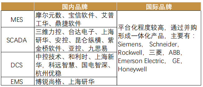 生产管控类软件主要分为制造执行系统(ManufacturingExecution System,MES)、分布式控制系统(DistributedControl System,DCs)、数据采集与监视控制系统( SupervisoryControl AndData Acquisition, SCADA)、能源管理系统(Energy Management System,EMS )等