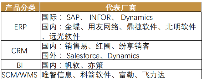 Management,SCM)、客户关系管理(CustomerRelationshipManagement,CRM)、商业智能(Business Intelligence,BI)软件等,其目的是提高工业企业的生产管理水平,提高产品质量水平和客户满意度,提升整个产品价值链的增加值。