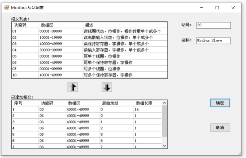 因此,网关的“Modbus Slave”要读写的寄存器的配置如下图所示: