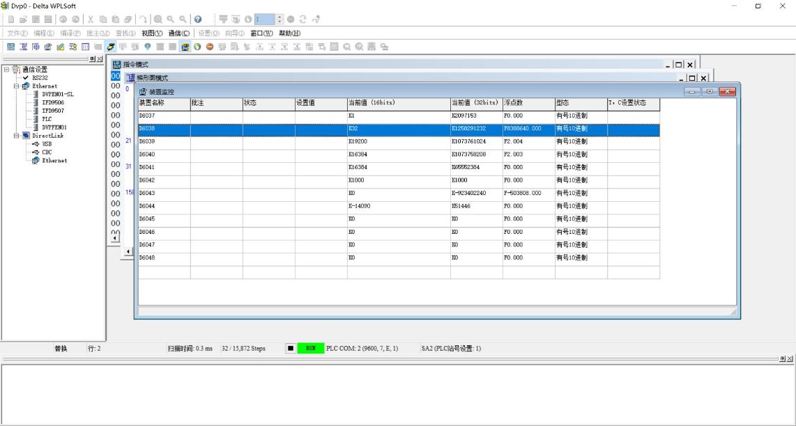 打开PLC软件Delta WPLSoft上传PLC的程序并切换到在线模式模式,如下图所示: