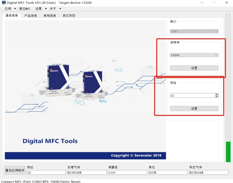 通过七星华创CS310流量计软件Digital ?MFC ?Tools读取通讯参数。