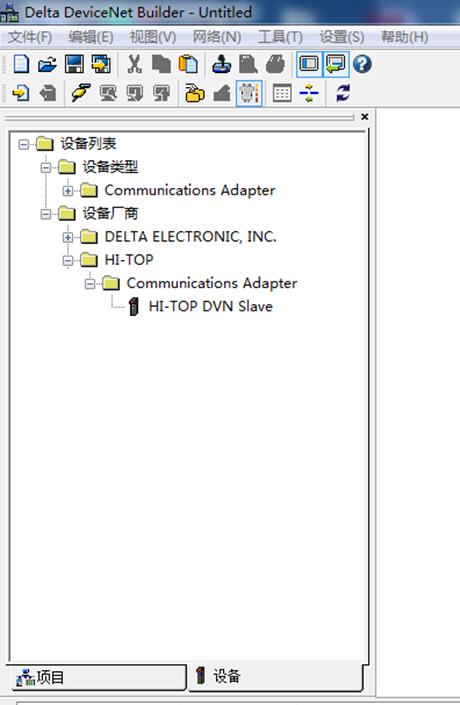 3.打开Devicenet Builder,点开菜单栏,“设置-通讯设置”驱动选择COMMGR里的通讯接口;