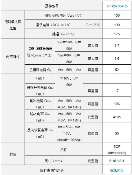 [4] RDS(ON)×Qg=120mΩ·nC(典型值),RDS(ON)×Qrr=127mΩ·nC(典型值)