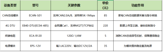 传统方案单设备改造成本超过500元,难以大规模推广。本方案采用模块化硬件组合(CAN总线模块+4G DTU+电源模块),核心硬件成本可控: