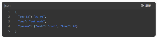 应用层:JSON格式指令,示例如下图所示: