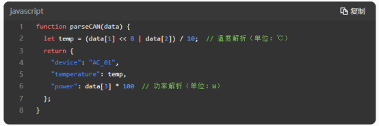 配置数据解析脚本,将CAN总线原始数据转换为可视化信息,如下图代码所示: