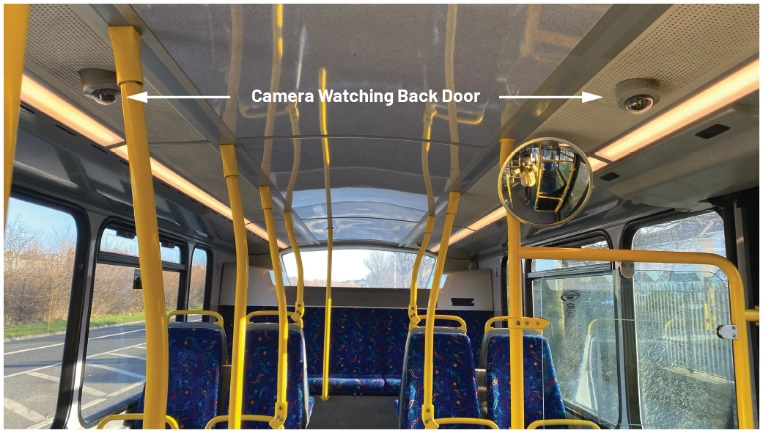 图3.公交车车载安防系统示例,展示了监控后门的摄像头。