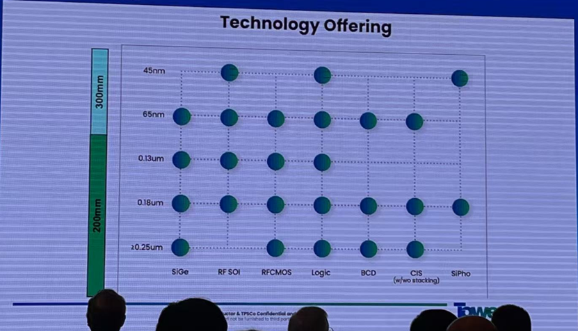 王敏指出,Tower Semiconductor 提供从 45nm 到 0.25?m 的多节点晶圆代工服务,晶圆尺寸覆盖 300mm 和 200mm。其技术平台种类丰富,主要包括 SiGe、RF-SOI、RFCMOS、Logic、BCD、CIS 以及 SiPho 等。