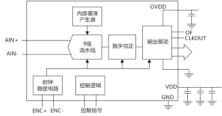高频高动态性能是其最突出的优势。该产品在 250MHz 采样率下,当输入信号频率为 30MHz 时,信噪比(SNR)可达 70dBFS,无杂散动态范围(SFDR)高达 82dBFS;即使输入频率升至 170MHz,SNR 仍保持 69dBFS,SFDR 维持在 76dBFS 以上。这种优异的高频性能源于多级流水线架构与数字校正电路的协同设计,确保在宽频范围内有效抑制噪声和杂散信号,满足多载波通信和雷达弱信号检测需求。同时,14 位分辨率配合 - 0.99~+0.8LSB 的微分非线性(DNL)和 ±3.5LSB 典型值的积分非线性(INL),实现了无失码的精准量化。