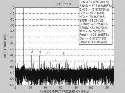 动态性能与工作频率的矛盾尤为突出。在雷达和宽带通信场景中,当输入信号频率升至 170MHz 以上时,传统 ADC 的无杂散动态范围(SFDR)会显著衰减,普遍降至 70dB 以下,导致强信号旁瓣掩盖微弱目标信号。而现代通信系统需同时处理多载波信号,要求 ADC 在宽频范围内保持高杂散抑制能力,传统方案已无法满足需求。