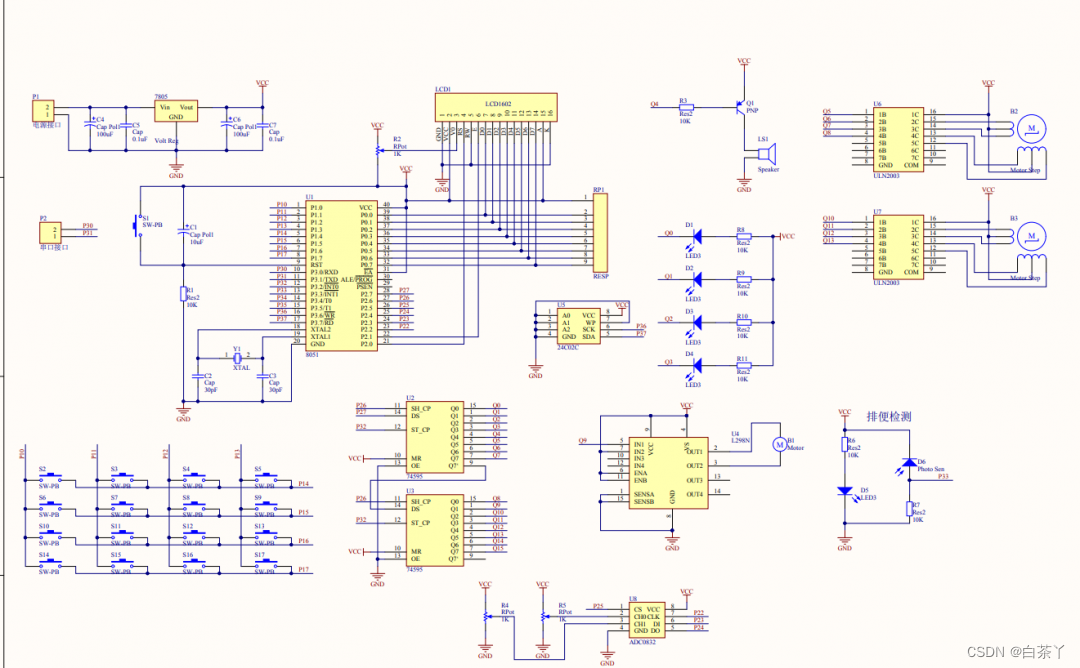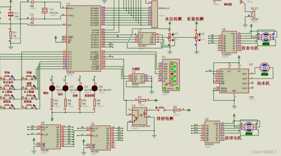 1、使用步进电机的正反转表示投喂、清理排泄物;使用直流电机表示加水。