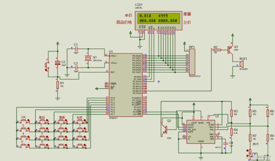 基于51单片机的电子秤【HX711,手动价格,总价累积】(仿真)