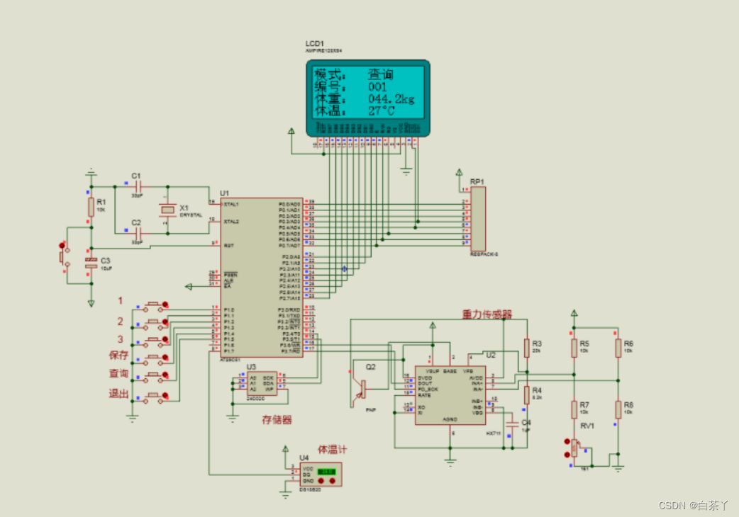 基于51单片机的体重秤【体重体温,12864】(仿真)