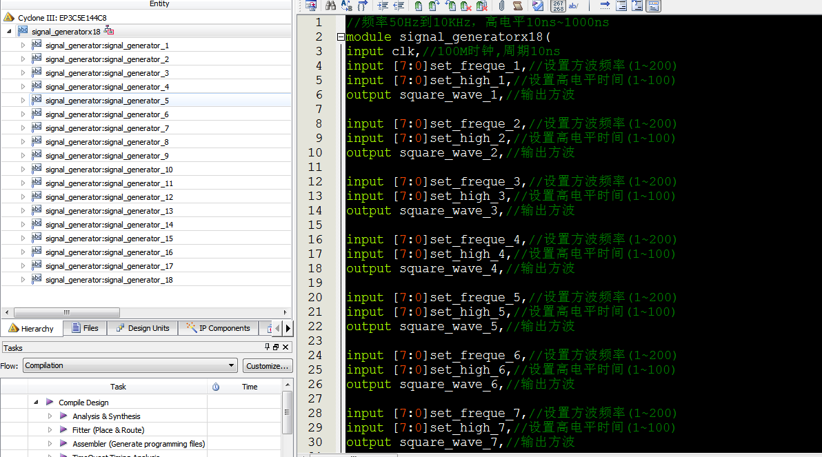 名称:18路方波信号发生器设计Verilog代码Quartus仿真