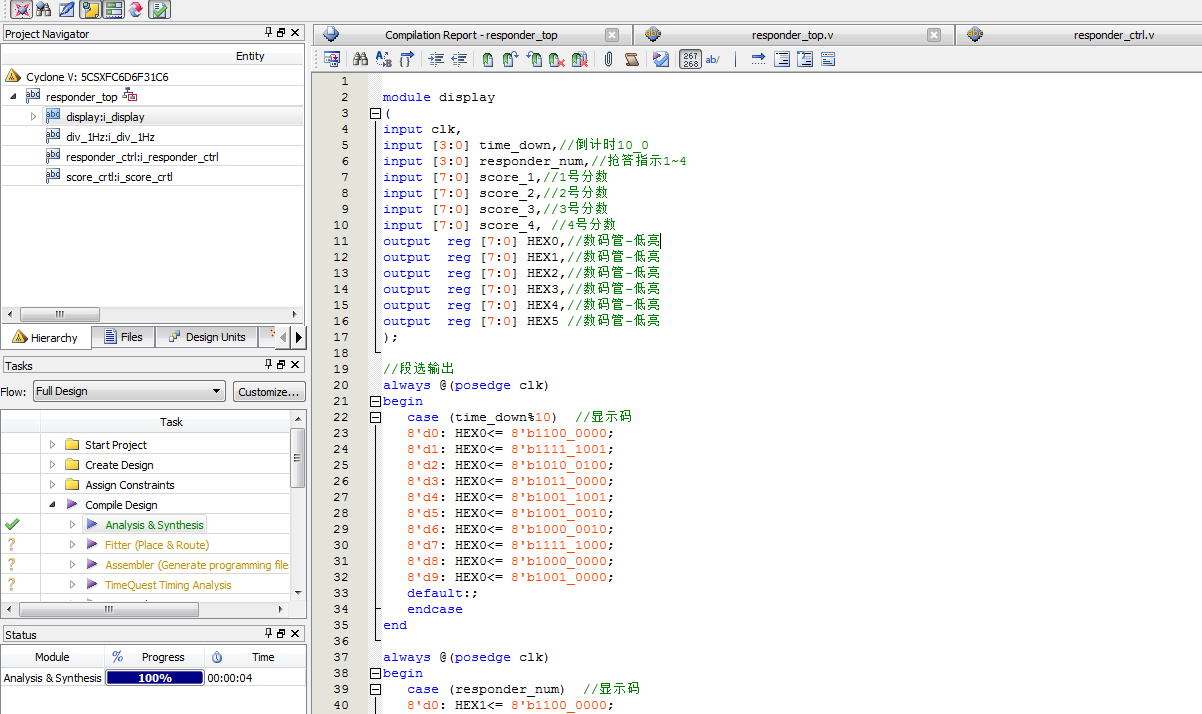 名称:4人抢答器设计Verilog代码Quartus? DE10开发板