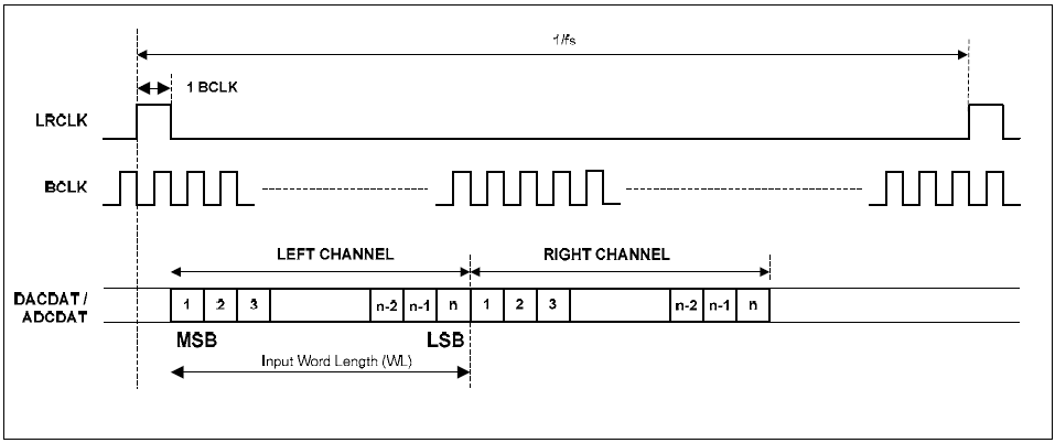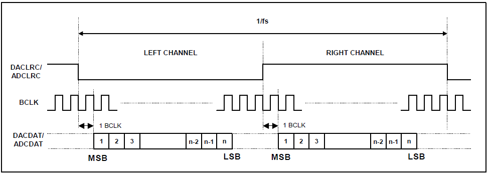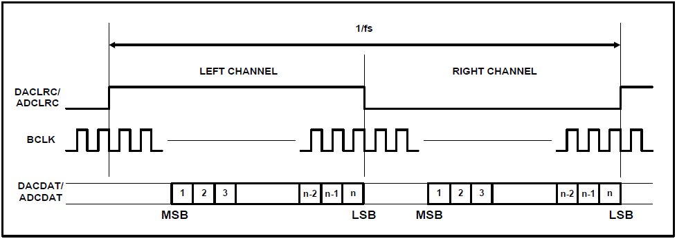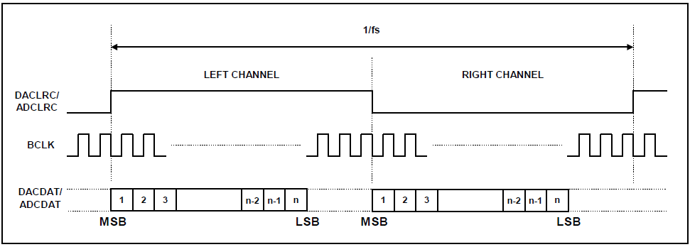 在本系统中FPAG和WM8731的控制和数据通信将用到I2C和数字音频总线接口。FPGA通过I2C接口配置WM8731的寄存器,通过I2S总线接口来进行音频数据的通信。关于I2C接口,其他实验中已经有讲解,下面我们主要来了解数字音频接口。