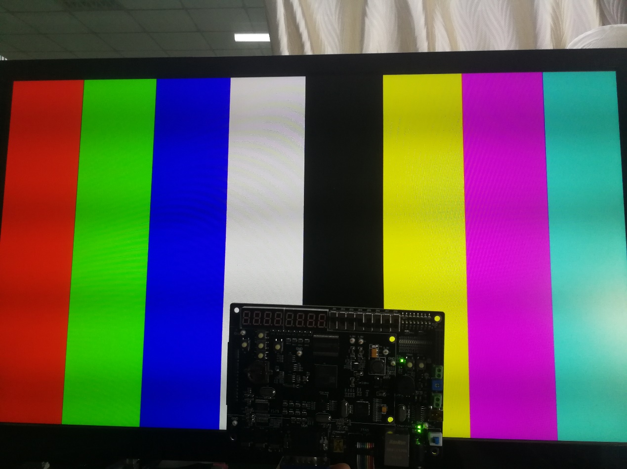 本试验用来试验开发板VGA显示功能,开发板通过VGA数据线使屏幕产生彩色条纹。