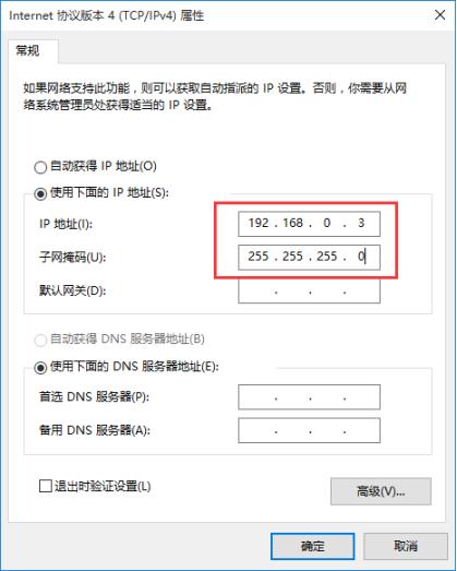 第二步:修改PC的IP地址为192.168.0.3。PC的IP Address需要和ethernet_test.v中