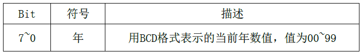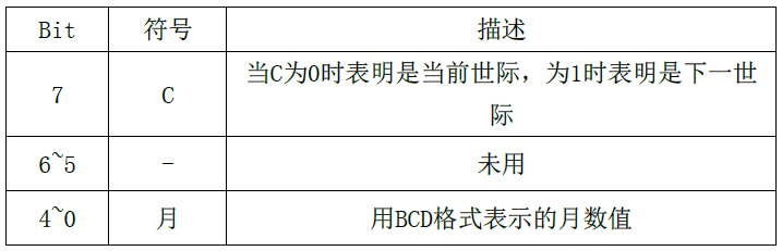 当年计数器的值是闰年时,PCF8563自动给二月增加一个值,使其成为29天。月/世纪寄存器的地址为07h,说明如下表所示:
