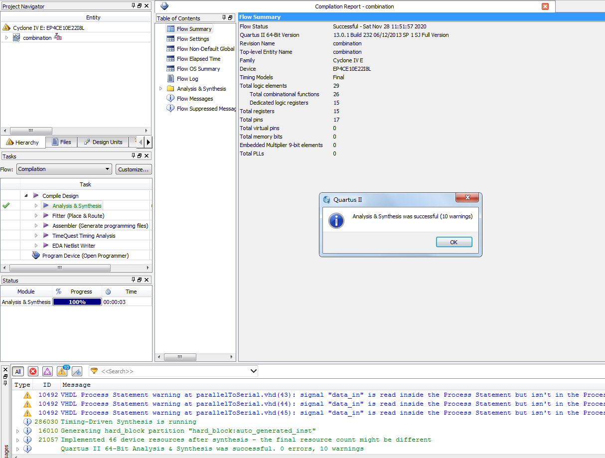 名称:串行和并行转换器的开发设计VHDL代码Quartus仿真