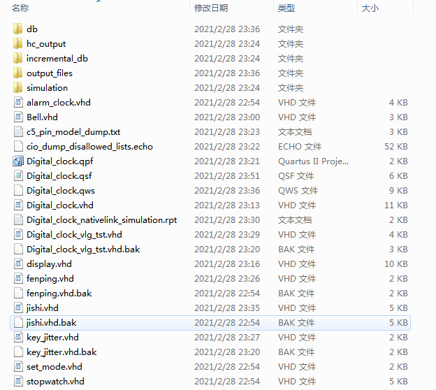 名称:计时、闹钟、秒表的多功能数字钟设计VHDL代码Quartus仿真