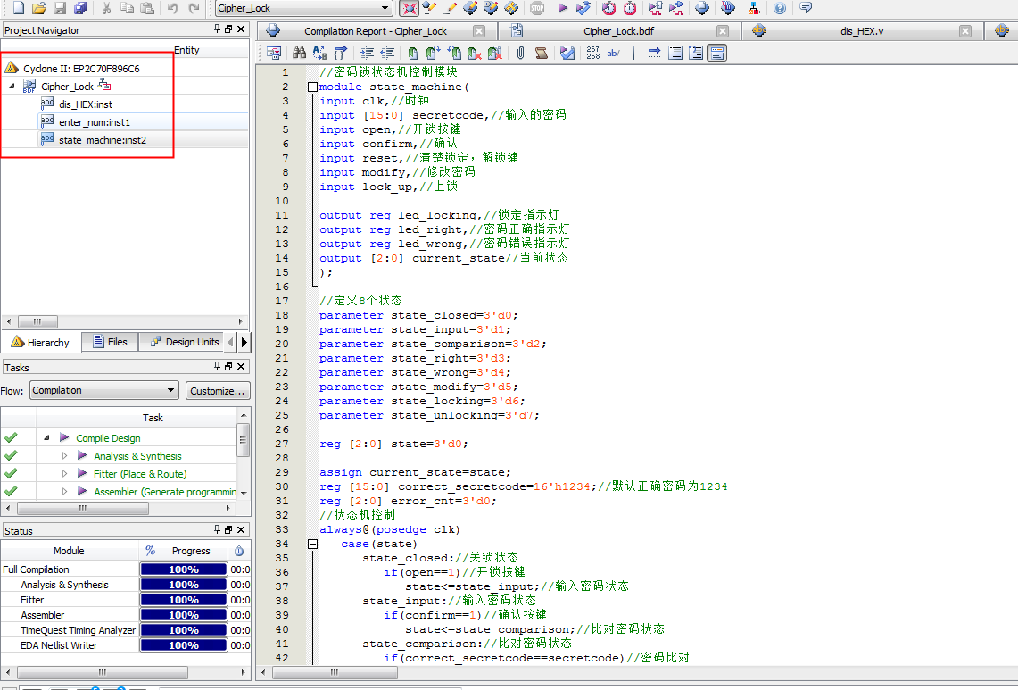 名称:密码锁设计Verilog代码Quartus? DE2-70开发板