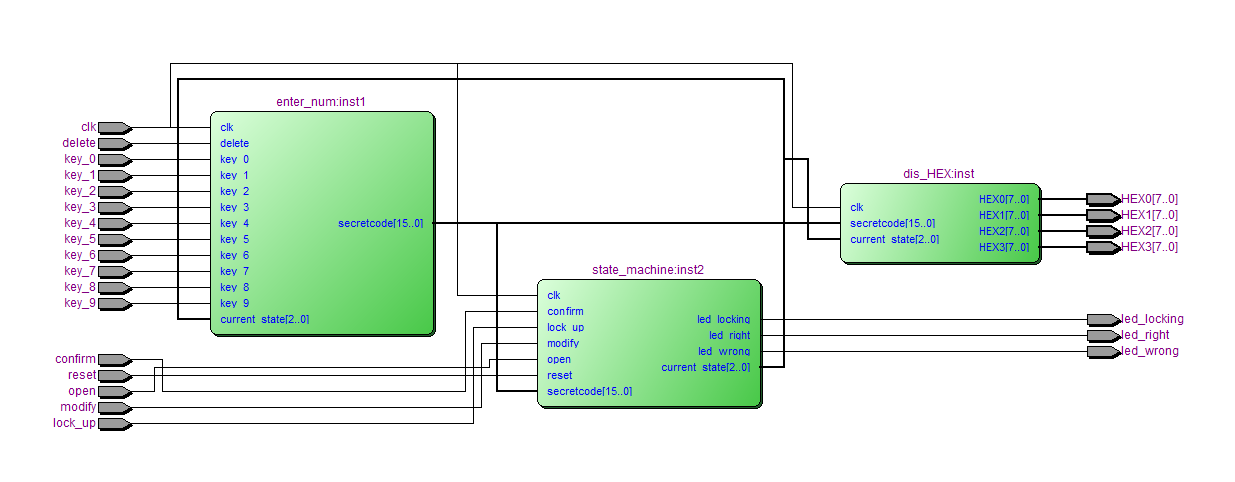 设计一个电子密码锁,实现设置修改密码和开锁的功能
