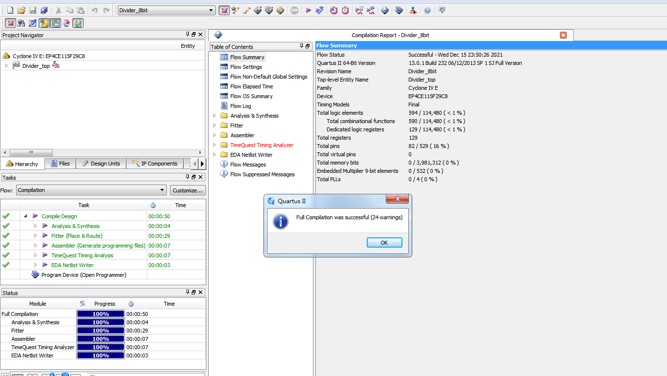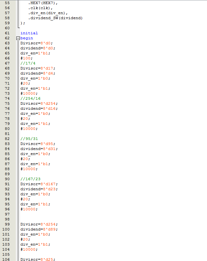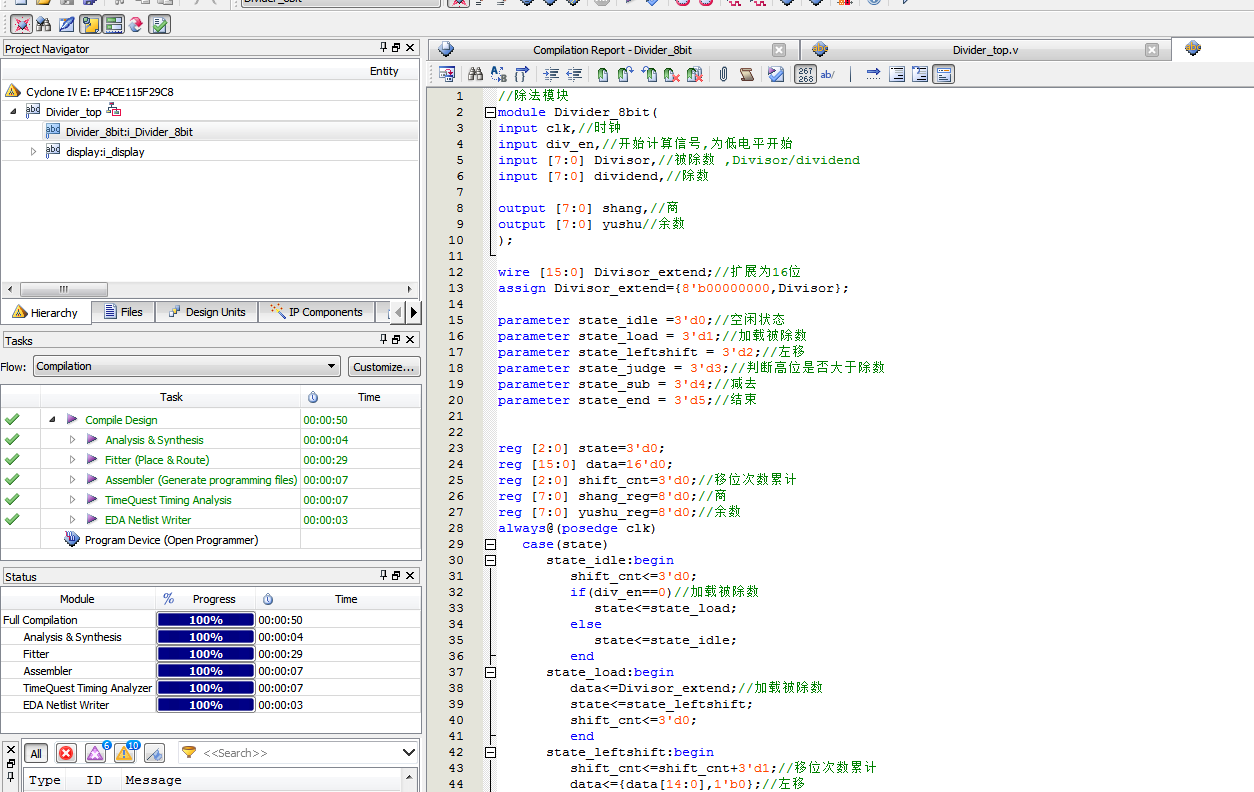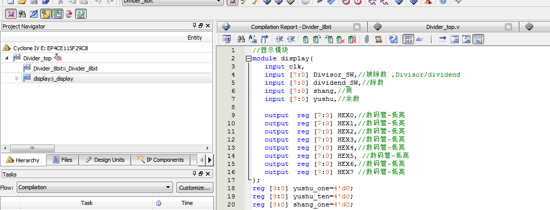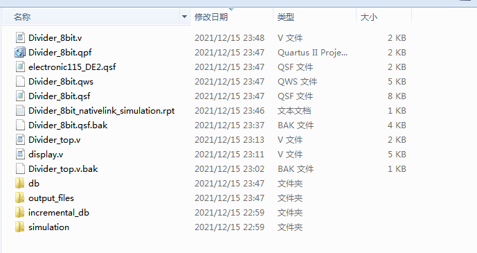 名称:二进制除法器设计Verilog代码Quartus? DE2-115开发板